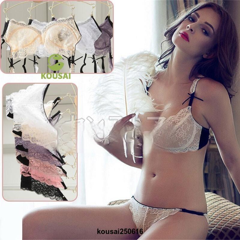 【メール便送料無料4】 セクシー ランジェリー レース シースルーブラ&ショーツセット 大きいサイズあり