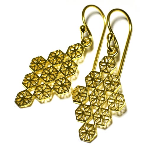 フラワーオブライフ(生命の花) ハート 24金ゴールド ヴェルメイユ加工 スターリングシルバー ピアス ツリーオブライフ(生命の樹) 【メール便対応可】
