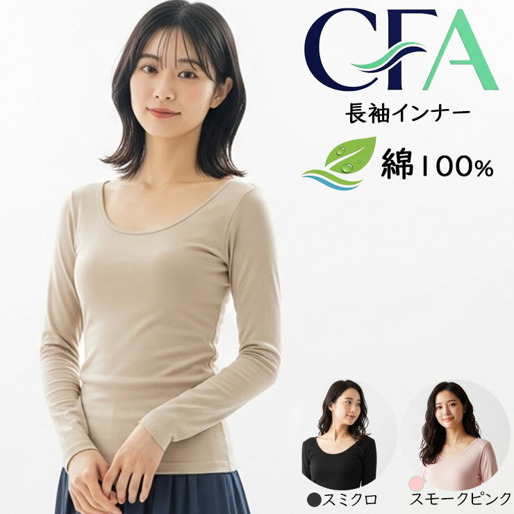 インナー レディース GUNZE CFA 爽快 さわやか綿100% 長袖インナー CB3246 単品 長袖 消臭加工 汚れにくい グンゼ gunze シーファー 綿100 綿 シャツ 襟ぐり 重ね着 カップ無し 婦人肌着 下着 (06808)