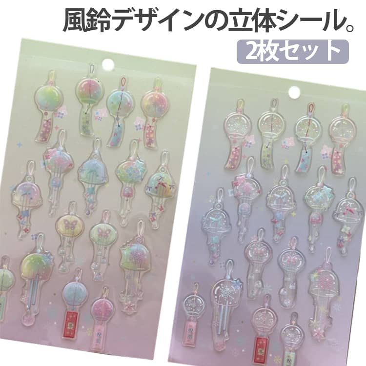 2枚セット 立体シール ドロップシール 透明 ふうりん 風鈴 かわいい おしゃれ 3Dシール 宝石シール 大人 子供 女の子 シール帳 交換 3D 立体 シール 透明シール ぷくぷくシール ぷっくりシール ボンボン デコシール スマホケース デコ