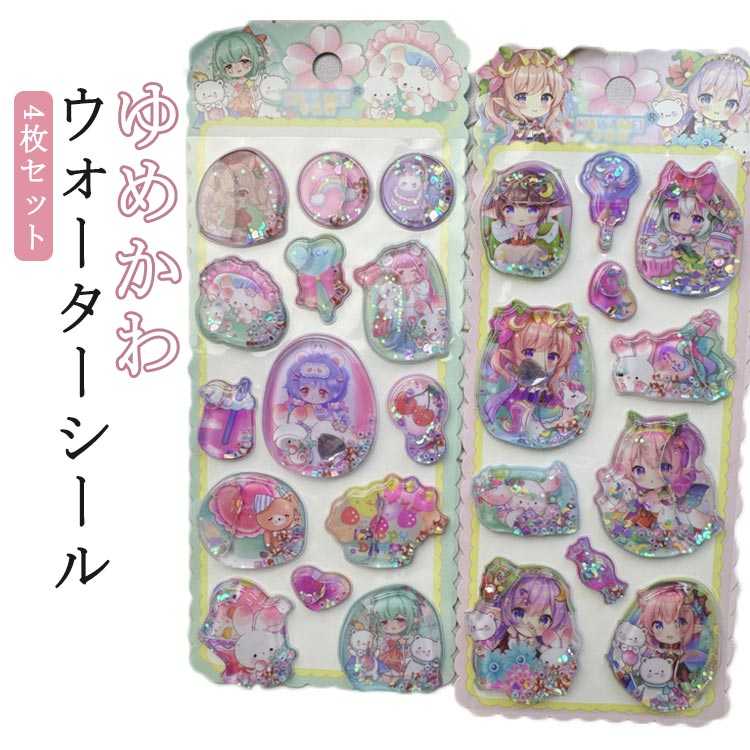 4枚セット ウォーターシール ゆめかわ 全4種 SNSで大人気 シール交換 シール帳 手帳 立体 シール 3D ステッカー 水入りシール かわいい キラキラ ラメ 女の子 ぷっくりシール ぷくぷくシール デコ シール プレゼント 小学生 平成レトロ 可愛い