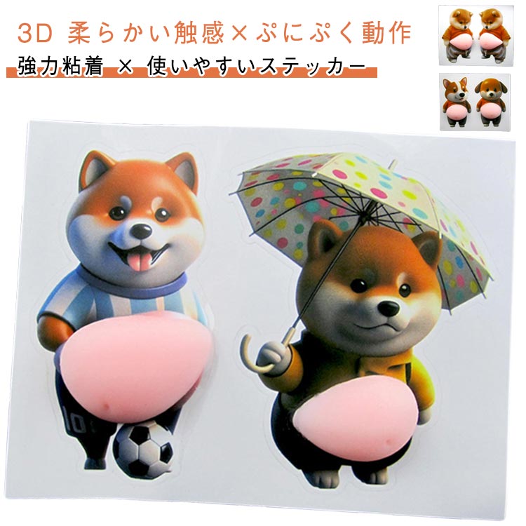 おなかシール もっちり シールデブ 犬 ぷにぷにシール 3D柔らかいお腹 ぷくぷくシール かわいい 3D マシュマロ ふわふわ もちもち もっちりスクイーズ ステッカー シール帳 デコレーション 携帯電話飾り用 手帳用 日記帳用 手芸用品 ストレス解消おもちゃ