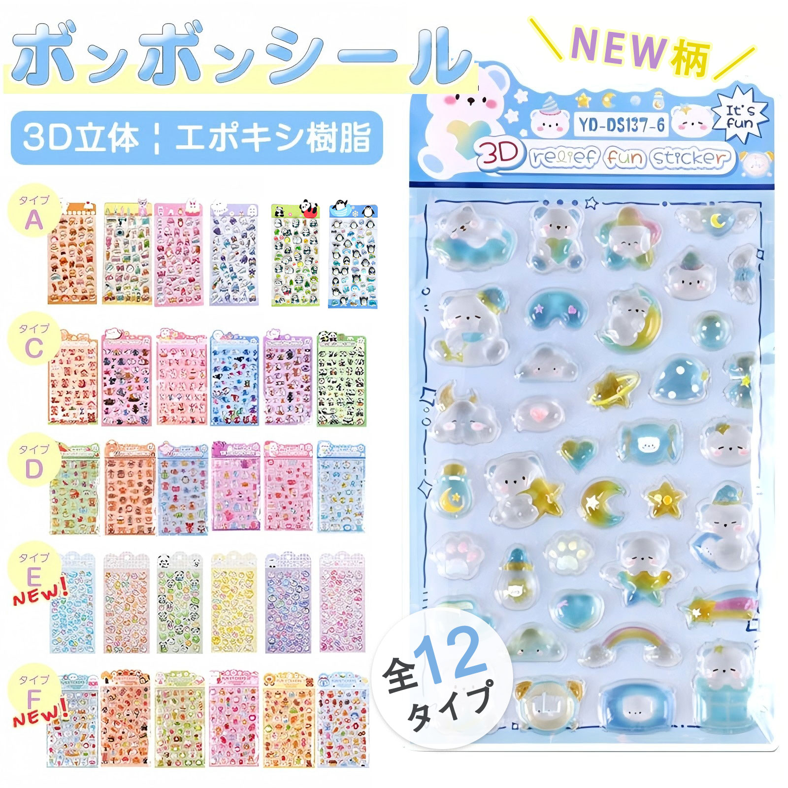 【超可愛い・最新デザイン】ドロップシール キラキラ 3D 立体シール ぷっくりシール ぷくぷくシール 3D 立体 平成レトロ ドロップ ぷっくり つやつや キラキラ かわいい 女の子 平成女子 シール帳 ドロップ シール交換 ボンボン
