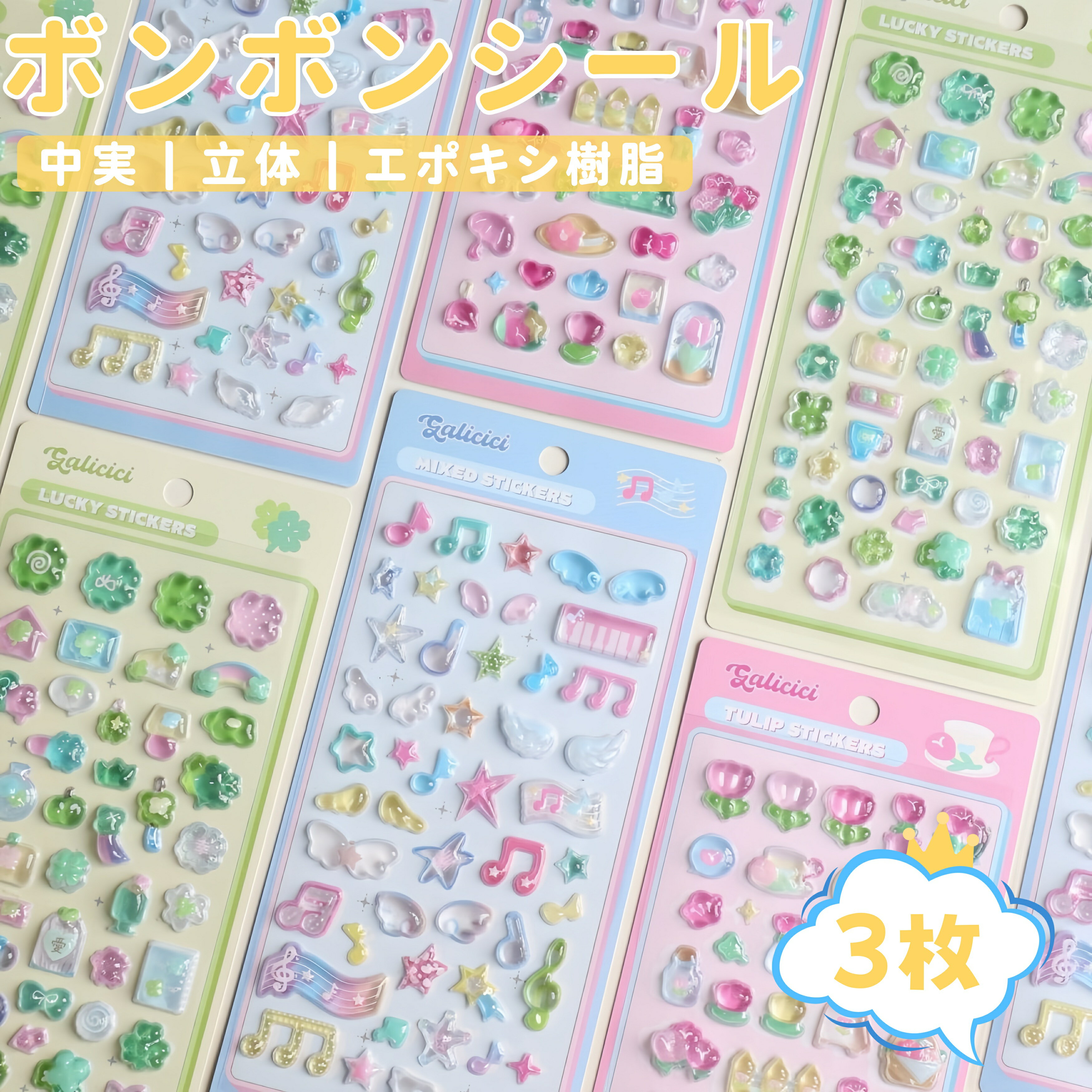 【新発売!ポイント10倍】 ボンボンシール ドロップシール キャラクター 3D 立体シール 四つ葉のクローバー 音符 花 ぷくぷくシール デコシール 平成レトロ ドロップ ぷっくり 女の子 平成女子 シール帳 手帳 装飾 ラブブ 交換 ボンボン 【3枚セット】