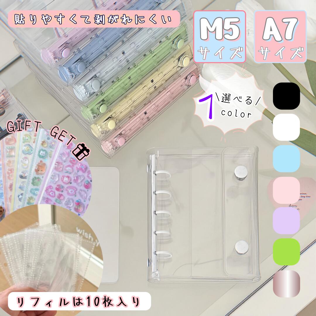 【★即納★先着50%OFFクーポン★ぷくぷくシール3枚を+リフィル10枚付き】 シール帳 バインダー 透明 リフィル はがせる シール手帳 キラキラ輝く 透明シール帳 バインダー M5 A7 女の子 はがせるシール収納 クリアバインダー ミニサイズ 手帳 推し活グッズ