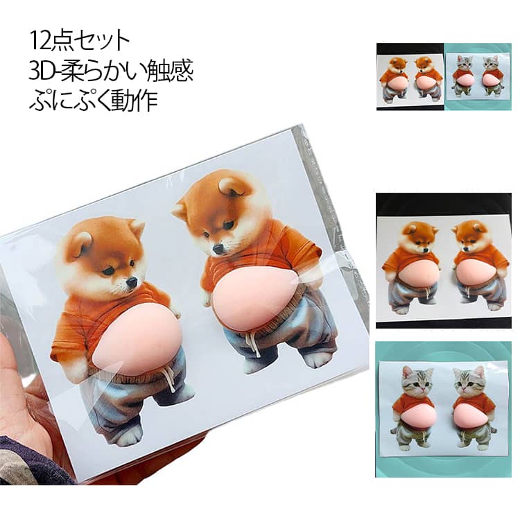 12点セット おなかシール お腹 シール 犬 お腹ぷにぷにシール シールデブ 猫 ぷにぷにシール 3D柔らかい お腹 ぷくぷくシール もっちりシール かわいい 3D ふわふわ もちもち もっちりスクイーズ ステッカー シール帳 デコレーション ストレス解消おもちゃ