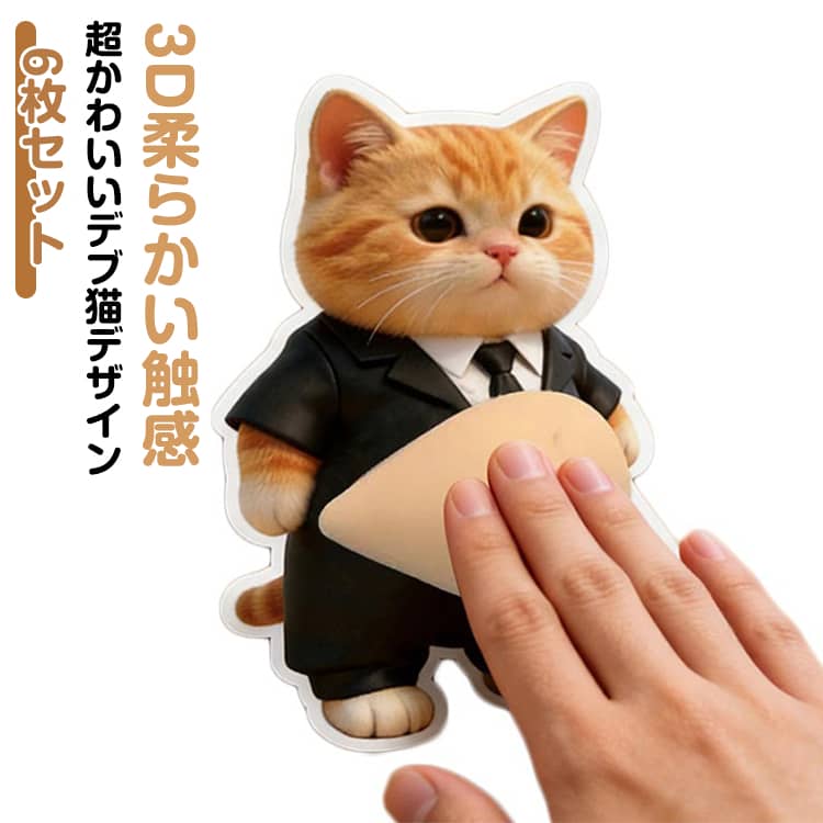 6枚セット超かわいいデブ猫デザイン3D柔らかい触感【3D柔らかい触感 × ぷにぷく動作】デブ犬の愛らしいデザインに 3D 立体構造を採用し、マシュマロのようなふわふわ、もちもちの柔らかさを実現しております。お腹の部分を押すとぷくぷくと可愛く動き、指先で触れるたびに治愈感を感じられ、ストレス解消に最適です。【超かわいいデブ猫デザイン × 多用途デコ】丸々としたデブ犬の表情が愛らしく、どこに貼っても明るい雰囲気を演出できます。携帯電話の背面、ケースはもちろん、手帳、日記帳の装飾に活用すると、専属の可愛い空間を作ることができます。【スクイーズ機能 × ストレスリリーフ】もっちりとした素材で、繰り返し押しても形が戻る優れた復元性を備えています。仕事の合間、勉強の休憩時間、通勤中など、いつでも簡単にスクイーズでき、蓄積したストレスを瞬時に発散することができます。【強力粘着 × 使いやすいステッカー】高品質な粘着剤を使用しており、貼り付けが簡単で、紙、プラスチック、金属等の様々な素材にしっかりと固定できます。また、無理なく剥がせる設計で、貼り替えても糊残りが少なく、繰り返し使用にも対応しております。【手芸用品 × 多シーン活用】手芸制作のアクセサリーとしても最適で、カード作り、ギフトラッピングのデコレーション等、創作の幅を広げることができます。家庭、オフィス、学校等、どの場所でも活用できる実用的で可愛いアイテムで、自分用はもちろん、プレゼントとして贈るのもおすすめです。 サイズ 3点セット(6枚入) サイズについての説明 17*12cm ※サイズ計測には誤差が生じます 素材 PVC TPR 色 3種入 備考 ●サイズ詳細等の測り方はスタッフ間で統一、徹底はしておりますが、実寸は商品によって若干の誤差(1cm~3cm )がある場合がございますので、予めご了承ください。 ●製造ロットにより、細部形状の違いや、同色でも色味に多少の誤差が生じます。 ●パッケージは改良のため予告なく仕様を変更する場合があります。 ▼商品の色は、撮影時の光や、お客様のモニターの色具合などにより、実際の商品と異なる場合がございます。あらかじめ、ご了承ください。 ▼生地の特性上、やや匂いが強く感じられるものもございます。数日のご使用や陰干しなどで気になる匂いはほとんど感じられなくなります。 ▼同じ商品でも生産時期により形やサイズ、カラーに多少の誤差が生じる場合もございます。 ▼他店舗でも在庫を共有して販売をしている為、受注後欠品となる場合もございます。予め、ご了承お願い申し上げます。 ▼出荷前に全て検品を行っておりますが、万が一商品に不具合があった場合は、お問い合わせフォームまたはメールよりご連絡頂けます様お願い申し上げます。速やかに対応致しますのでご安心ください。
