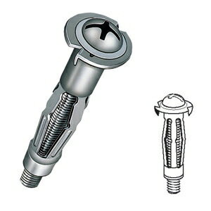 新建材・石膏ボード・中空構造壁にあらゆる中空壁面への器具の取りつけに ●傘が開いてガッチリ固定●合板壁面に通信器具、分電盤、スイッチ盤、棚受などの取りつけに●適用板厚:17〜27mm●ボルト径:φ4mm●ドリル径(下穴):φ9.0mm●最大引抜強度:100.0N(10.2kgf)(石膏ボード12.5mm厚×2)※最大引抜強度は施工する材料・施工条件等により変わります。保証荷重ではありませんのでご注意ください。 ●入数:50本 メーカー:JEFCOM・DENSAN(ジェフコム・デンサン)