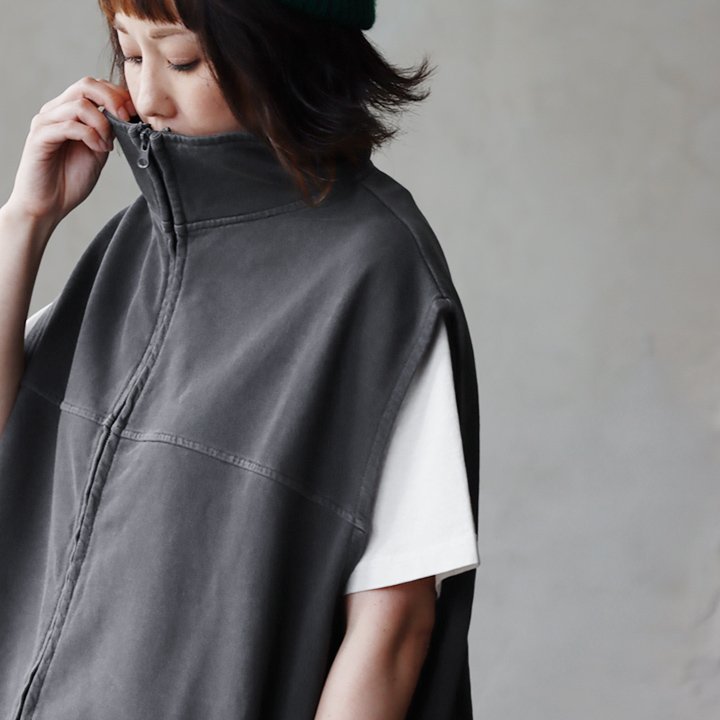 ベスト ジップベスト 前開き 重ね着 ハイネック レディース 綿100 コットン 裏毛 ピグメント 褪せ色 大きいサイズ 体型カバー カジュアル メンズライク パティ