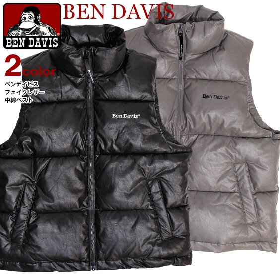 BEN DAVIS ベスト ベンデイビス 2023 中綿ベスト フェイクレザー ロゴ 刺繍 スタンド ジップベスト メンズ ベンデイヴィス ノースリーブ アウター 中綿 ユニセックス 防寒 ストリート カジュアル 秋冬 BEN-2072
