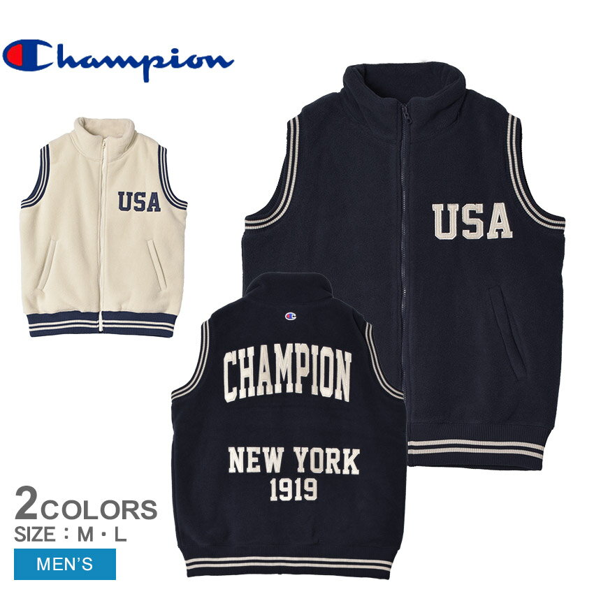 チャンピオン フリースベスト CHAMPION ジップベスト メンズ ホワイト 白 ネイビー 紺 ZIP VEST C3-A609 ベスト アウター 上着 羽織 フリース 防風 防寒 シンプル カジュアル スポーティ アウトドア キャンプ おしゃれ ブランド
