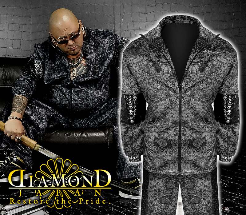 菊総柄 長袖 セットアップ ジャージ バロック柄 オラオラ系 メンズ ファッション ヤクザ 上下 服 刺繍入り 白×黒 ヤンキー オラオラ 悪羅悪羅 オラオラ系 DJ-147 派手