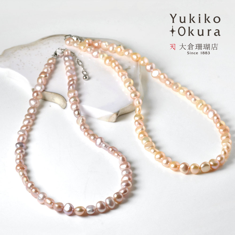 【全品ポイント5倍】 淡水パール ネックレス 真珠 バロック ショート シンプル ピンク オレンジ 天然石 ユキコ オオクラ ブランド レディース ジュエリー 送料無料 6月誕生石