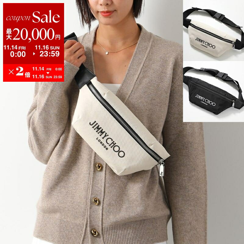 【11/14-11/16限定・最大2万円OFFクーポン配布中】Jimmy Choo ジミーチュウ ボディバッグ FINSLEY CZM DNH フィンスリー レディース ベルトバッグ ロゴ キャンバス ナイロン クロスボディ 鞄 カラー2色