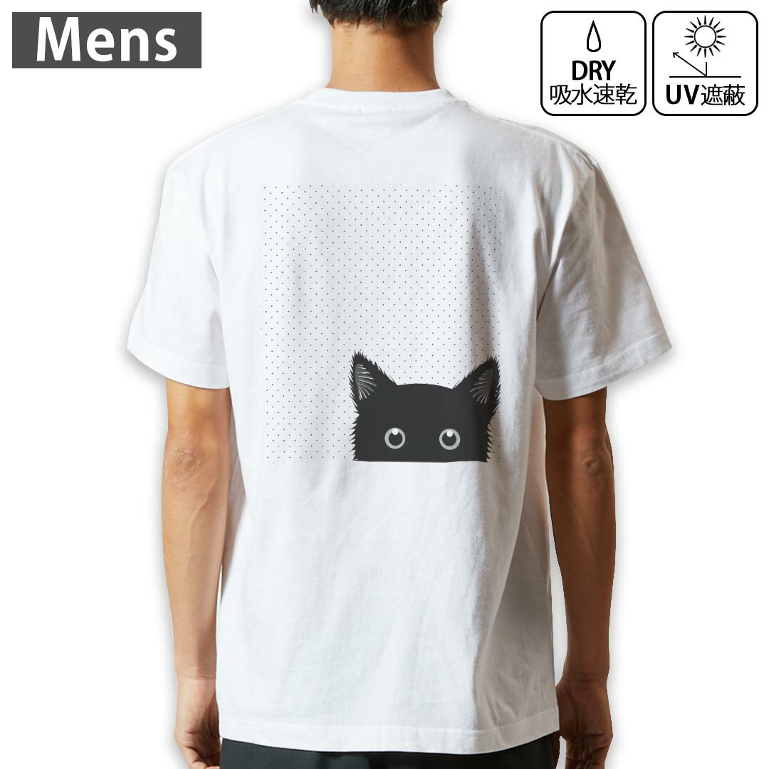 メンズ ドライバックプリントTシャツ ホワイト 半袖 4.1オンス ジム トレーニング スポーツ 運動会 ドライアスレチック UVカット 紫外線遮蔽 吸水速乾 デザイン Tshirt S M L XL 2XL 3XL 4XL 5XL 6XL 010211 猫 黒 白