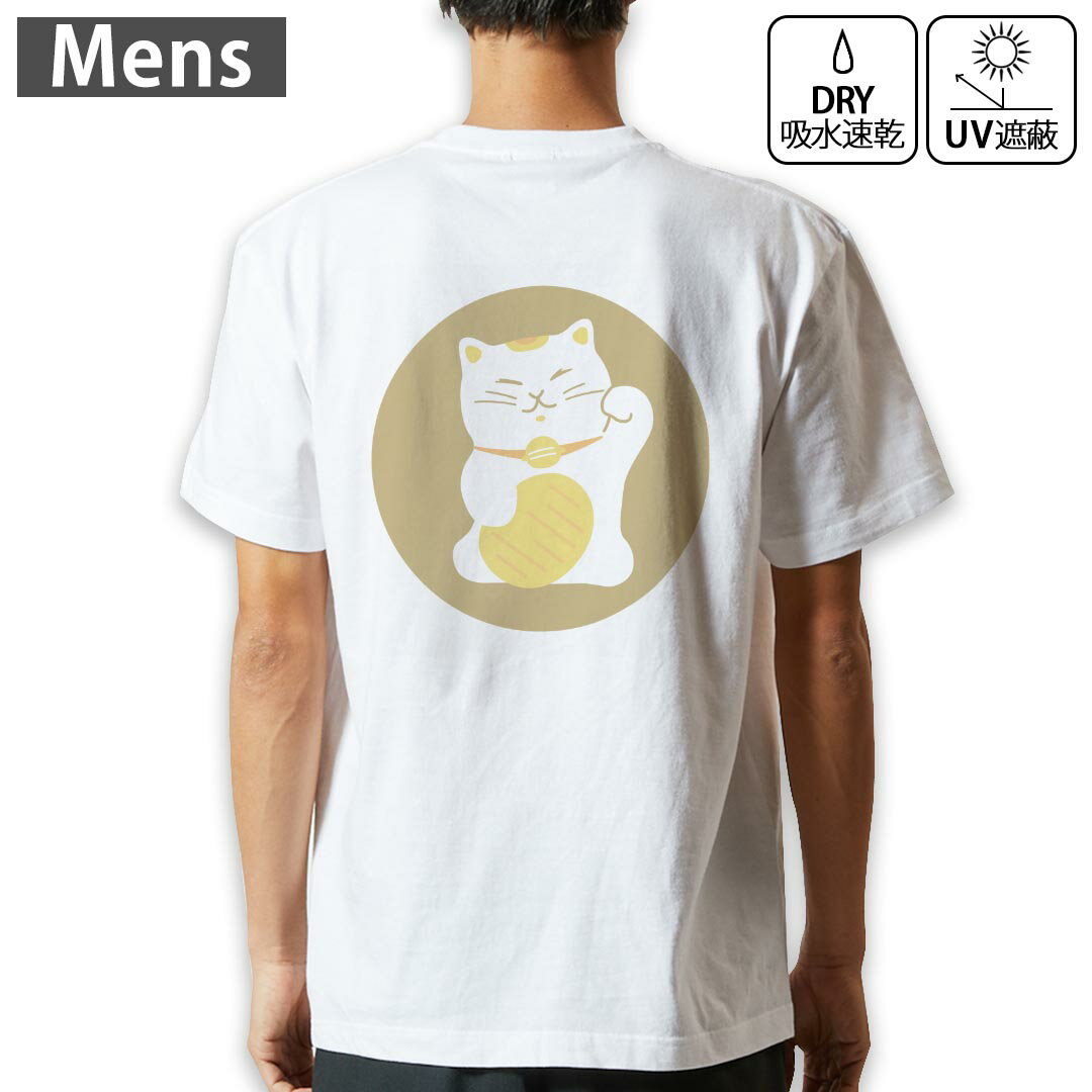 メンズ ドライバックプリントTシャツ ホワイト 半袖 4.1オンス ジム トレーニング スポーツ 運動会 ドライアスレチック UVカット 紫外線遮蔽 吸水速乾 デザイン Tshirt S M L XL 2XL 3XL 4XL 5XL 6XL 012848 ねこ 招き猫 商売繁盛