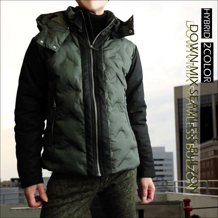 【送料無料】【ポイント10倍】ダウンジャケット メンズ シームレス パーカー ダウンミックス ブルゾン マッチング 切替 撥水加工 防寒 フード取り外し モード系【あす楽対応】【あす楽_土曜営業】【あす楽_日曜営業】