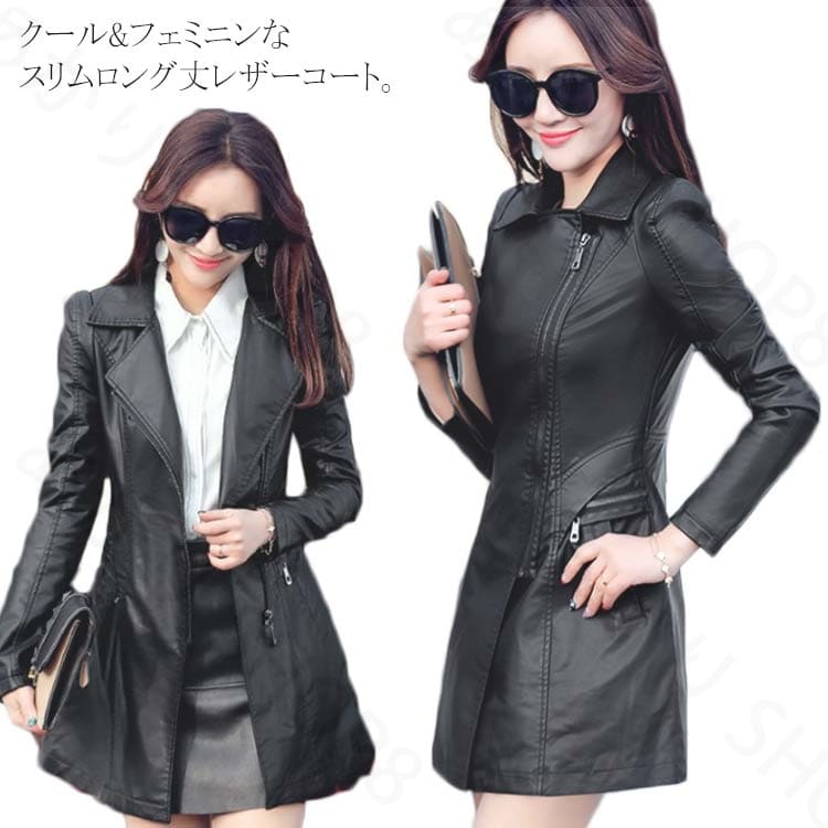 クール&フェミニンなスリムロング丈レザーコート。 立体縫製で体に程よく寄り添い、女性らしい美しいウェストラインをメイク。 飾りベルトでウェストラインをマークし脚長に!着膨れしないスリムなシルエットが人気のヒミツ! ノーマルと中綿入りの選べる厚み!春秋はもちろん、真冬の日でもクールであったか! サイズ S M L XL 2XL 3XL サイズについての説明 S 肩幅35 バスト86 着丈75 袖丈57 お勧め体重44kg M 肩幅36 バスト90 着丈76 袖丈58 お勧め体重49kg L 肩幅37 バスト94 着丈77 袖丈59 お勧め体重54kg XL 肩幅38 バスト98 着丈78 袖丈60 お勧め体重59kg 2XL 肩幅39 バスト102 着丈79 袖丈61 お勧め体重64kg 3XL 肩幅40 バスト106 着丈80 袖丈62 お勧め体重74kg 4XL 肩幅41 バスト110 着丈81 袖丈63 お勧め体重84kg 素材 合成皮革 色 ブラック ブラック?中綿 備考 注意★洗濯時、色落ちがございます。他の物とのお洗濯もお控えくださいませ。 湿気を含んだ状態や水を含んだまま放置しないでください。 この製品は洗濯で若干縮むことがあります。洗濯機は使用できません。 ※ベージュ×モカのみ使用糸の関係上、風合いが少々異なります。 ●色合いはモニター環境により若干の誤差が出ます。 ●綿混合商品は洗濯時に多少縮む事がございます。 ●本製品は生産過程におきまして、生地を織る際の糸の継ぎ目や多少のほつれが生じることがありまが、品質上は問題ありません。また、生地の織りに他繊維が混紡している場合もございます。 ▼色落ちの恐れがございますので、他のものとは分けて洗濯してください。 ▼タンブラー乾燥はお避け下さい。 ▼洗濯の際は他の物と区別して、漂白剤を避け、手洗いを お勧めします。