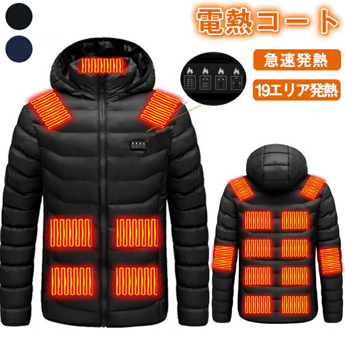 電熱ジャケット メンズ ヒータージャケット 19エリア発熱 加熱ジャケット 加熱コート 加熱ジャケット ジャケット フード付き USB式給電 電気ジャケッ 3段階温度調整 電熱コート 防寒着 電熱 電熱ウェア 防寒ベスト 洗濯可 アウトドア バイク 釣り スキー 作業着