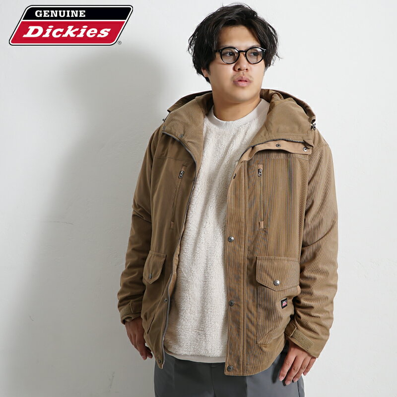 大きいサイズ 2L 3L 4L 5L XL XXL XXXL XXXXL【商品説明】 アメリカを代表するワークカジュアルブランド 「GENUINE-Dickies(ジェニュインディッキーズ)」からワークな雰囲気がオシャレな ライトなミリタリージャケットの登場。 表面はラフさと品のよさを兼ね備えるコーデュロイ生地、裏地もついているので、 袖通しもよく、ゴワつきもなく、軽いので見た目以上に良い着心地に。 生地感は薄すぎず、厚すぎず、羽織りには丁度良い生地感なので、秋のちょっとした羽織りから まだまだ寒い春先などのライトアウターとしてロングシーズン活躍してくれます。 機能面もポケットを多数配置、ワークカジュアルならではの仕上がりに。 ワークスタイルやアメカジスタイルはもちろん、少しキレイめなスラックスなどとの相性も良く、 幅広いコーディネートで活用できます。 【着用オススメ季節】 秋/春 【素材】 ポリエステル 100% 生地感:やや薄手 生地の伸縮:なし 生地の透け感:透けません 【着用コメント】 画像モデル 180cm/102kg 胸囲:112cm / ウエスト:111cm 3Lサイズでジャストサイズです。少しゆったり着るなら4Lでも良いと思います。防寒着としてはやや薄手ですが、春などのちょっとした羽織りには抜群です。とてもオシャレな雰囲気漂います。 着用(A) 172cm/93kg 2Lでちょうど良いサイズ感です。3Lサイズは少しゆったり着れました。厚手のパーカーやトレーナーなどのインナーなら3Lでも良いと思います。カジュアルだけでなく、キレイめスタイルにもイイですね。 着用(B) 174cm/116kg 4Lを着ましたが窮屈感なく、ジャストです。少しゆったり着るなら5Lがオススメです。 【SIZE】 着丈 身幅 肩幅 袖丈 アームホール 2L 77 65 57 63 28 3L 78 67 59 63 29 4L 80 69 61 64 30 5L 82 83 62 65 33 採寸方法については[ サイズガイド ]をご覧ください。