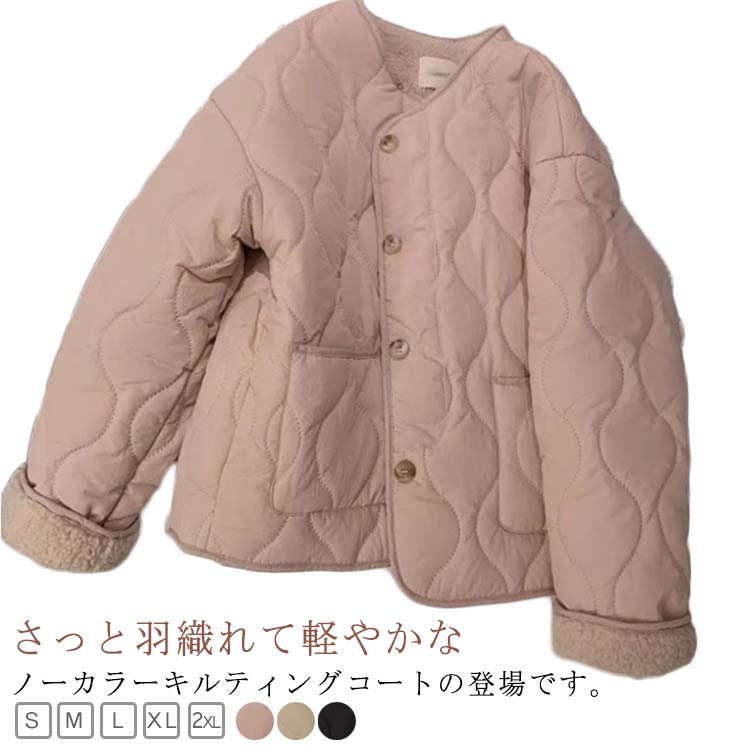 ブルゾン キルティング ジャケッ ノーカラーキルティングジャケット キルティングライナー 中綿