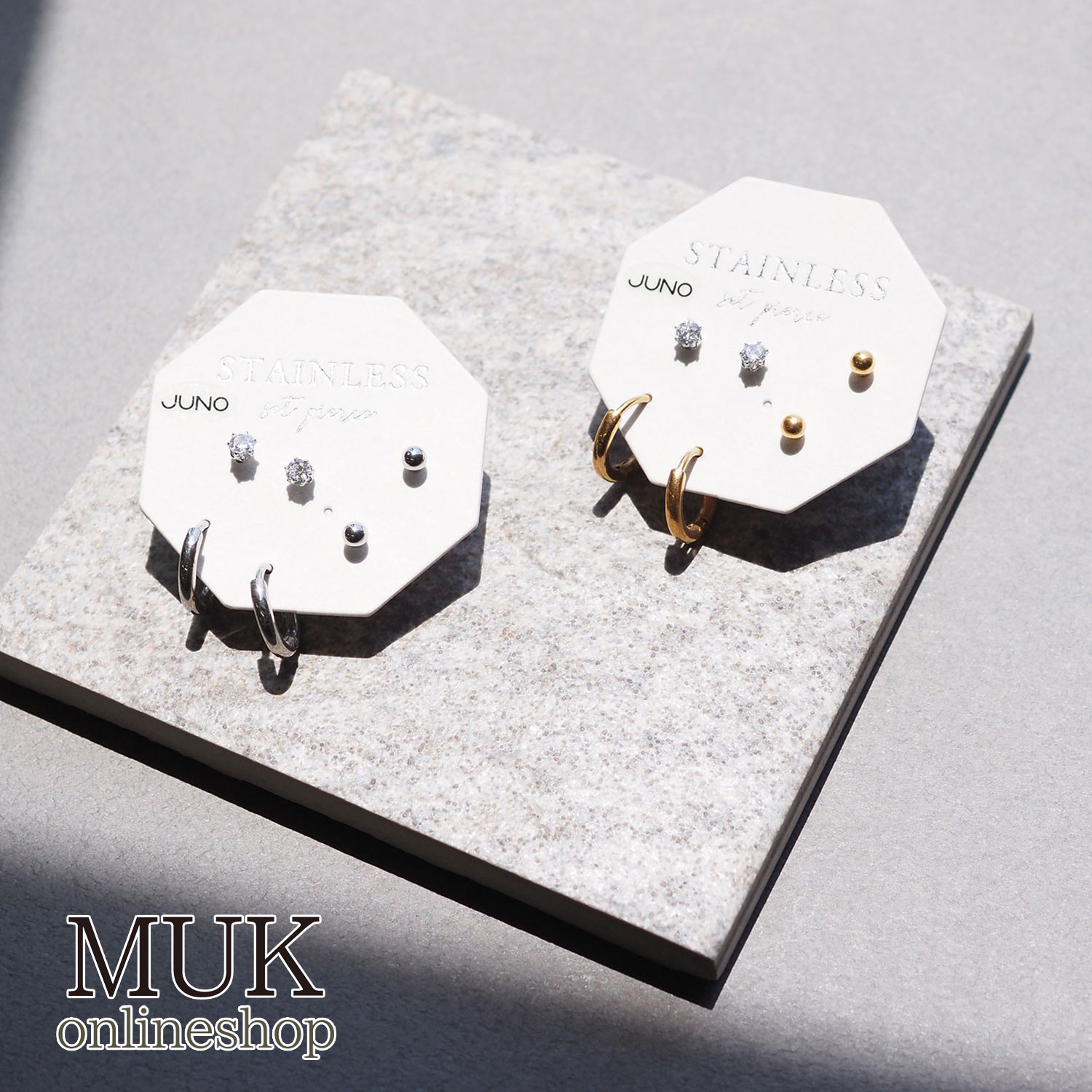 ピアス ステンレスピアス メタル ストーン ゴールド シルバー フープ セットピアス 金属アレルギー 新作 通販 お洒落 高みえ ブランド Juno ジュノ muk プレゼント ギフト クリスマスプレゼント