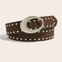 ベルト レディース レトロブラウン スタッズ フェルト素材 ウエストマーク 細見え スタイルアップ スクエアバックル アメカジ クールカジュアル スカート ワンピース ブラック キャメル ベージュ ヒョウ柄