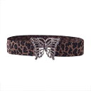 ベルト レディース バタフライ 伸縮素材 幅広 ウエストマーク シンプル 飾り ワンピース ジーンズ デニム カジュアル レトロ 合金バックル ブラック ベージュ ヒョウ柄(x2)