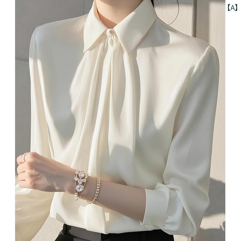 ホワイト フォーマルシャツ ドレスシャツ 無地 サテン 高級感 ビジネス オフィス おしゃれ ギャザーデザイン オケージョン トレンド