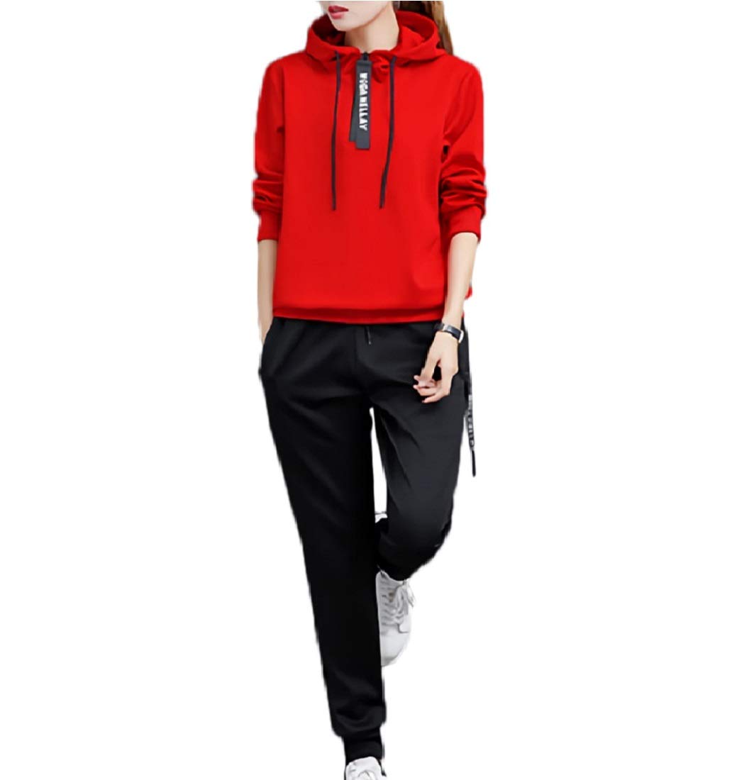 【送料無料】[ジルア] スウェット パーカー ジャージ レディース 上下 セット トレーニング スポーツ ルーム ウェア バイカラー #007 色:A02.レッド、サイズ:2XL