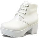 【送料無料】[ジルア] ショートブーツ 厚底 太ヒール 22.0cm〜27.5cm レースアップ レディース 靴 紐 軽量 ブラック ホワイト #061 色:A04.ホワイト 23.5-24.0cm (38)、サイズ:Free Size