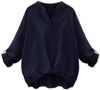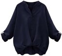 【送料無料】[ジルア] 選べる4カラー×5サイズ(S〜2XL) レディース スキッパー ドレープ シャツ ブラウス 長袖&7分袖 2タイプ 袖ボタン 調整 #093 色:A093.ネイビー、サイズ:S