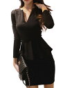 【送料無料】[ジルア] Vネック ワンピース レディース キャバ ナイト ドレス セクシー ミニ スカート 長袖 きれいめ ライン ペプラム パーティー #068 色:A068.ブラック、サイズ:M