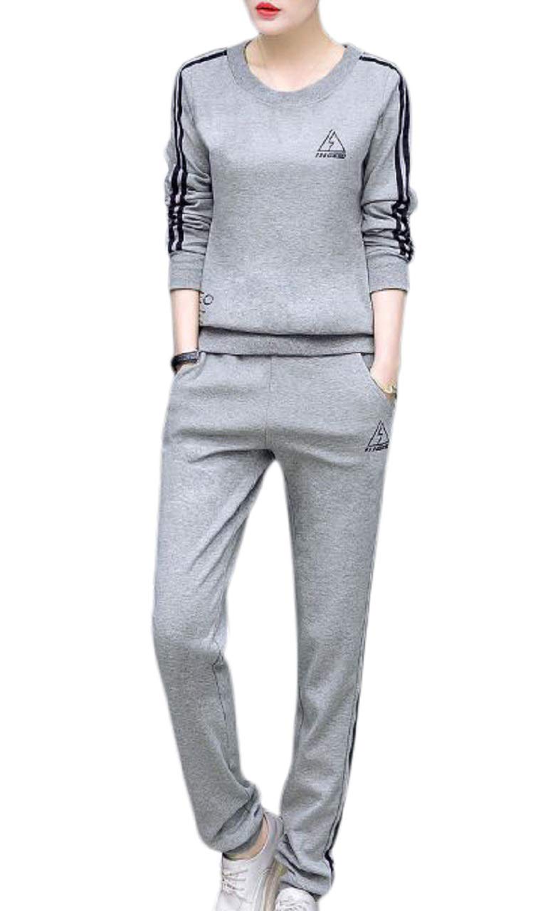 【送料無料】[ジルア] レディース スウェット ジャージ M 〜 3XL 上下 セット アップ 長袖 トップス ロング パンツ 部屋着 ルームウェア ホワイト ブラック グレー 3カラー #094 色:A094.グレー、サイズ:M-3XL Regular