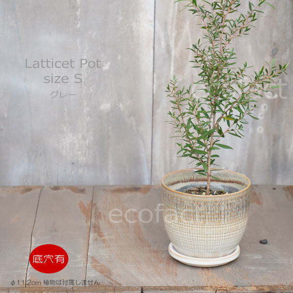 植木鉢 おしゃれ 陶器鉢 フラワーポット ミニポット 底穴あり Lattice S グレイ φ11.2cm プランター 園芸鉢 観葉植物 オージープランツ