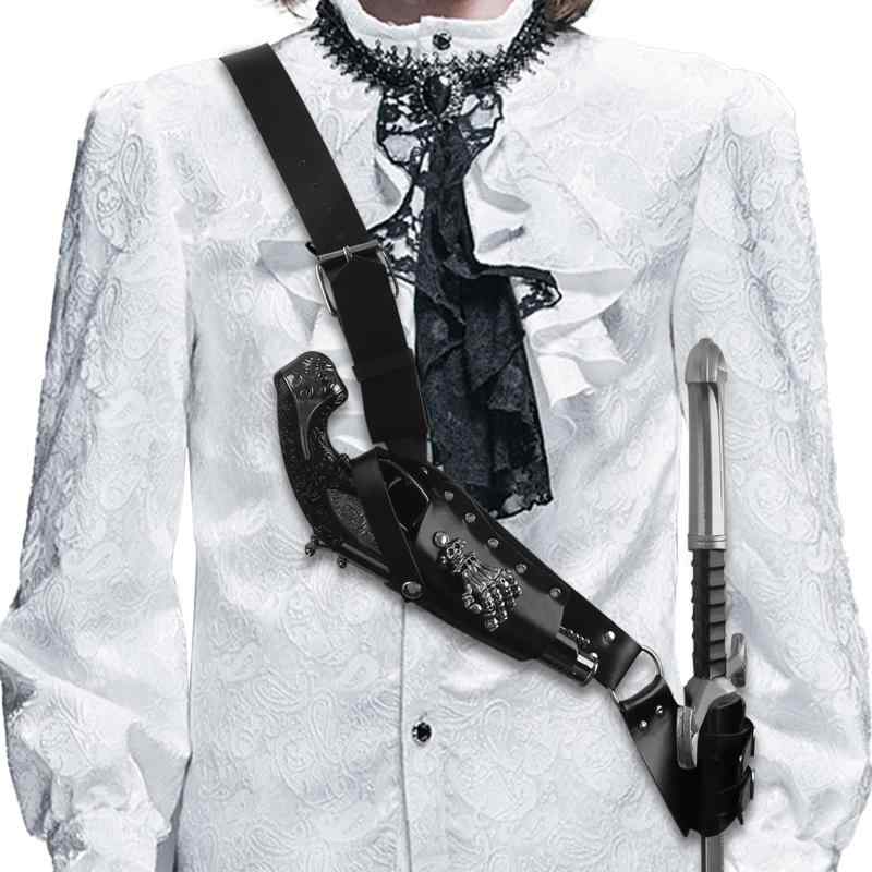 剣用ホルスター メンズ 中世 バイキングスタイル レトロ ヴィンテージ 合成皮革 PUレザー 肩掛け ダブルソード 調節可能 コスプレ 仮装 舞台衣装 黒 ダークブラウン