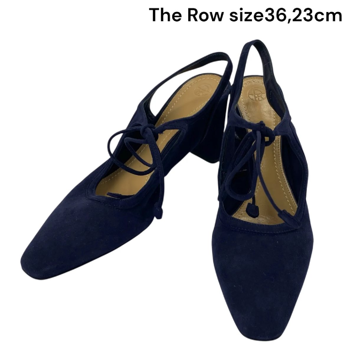 【中古】美品 ザ ロウ The Row パンプス ハイヒール スリングバック スエード ネイビー 36、23cm レディース S5S088