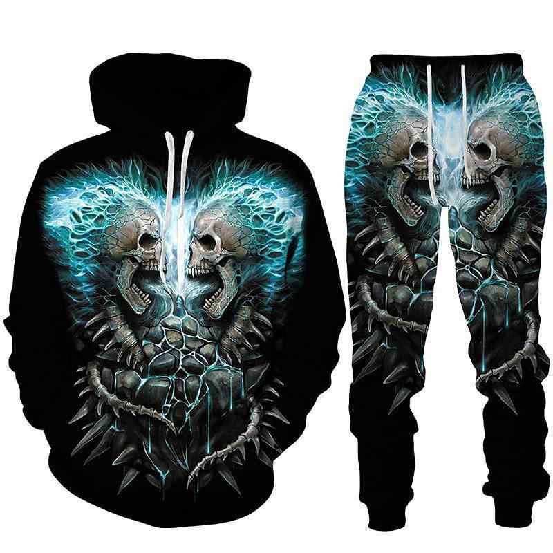 スウェット セットアップ ユニセックス ダークゴシック スカルプリント パーカー スウェットパンツ 上下セット リブ裾 フード付き 厚手 綿 カジュアル スポーツ 部屋着 普段使い 秋冬