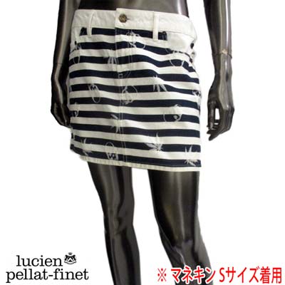 ルシアンペラフィネ lucien pellat-finet レディース ボトムス スカート ロゴ 総柄ボーダーライン・スカル/ヘンプロゴプリント付ミニスカート ネイビー YMP249F INDIGO (R43800) 【送料無料】【smtb-tk】 DB14S