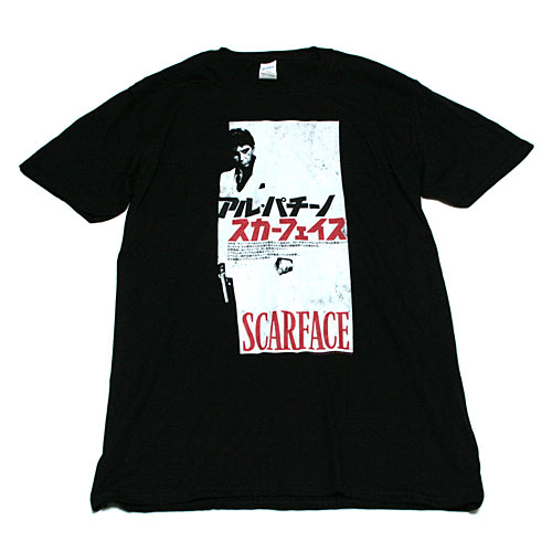 1983年公開映画SCARFACE Tシャツです バックプリントはありません アメリカのオフィシャルショップからの輸入品です 【サイズ詳細】 Sサイズ 着丈68cm 身幅(脇下)45cm Mサイズ 着丈71cm 身幅(脇下)49cm Lサイズ 着丈74cm 身幅(脇下)53cm XLサイズ 着丈77cm 身幅(脇下)57cm COTTON 4.5ozボディ メール便送料無料ですが、宅配便ご指定の場合 ゆうぱっく着払いでの発送となります