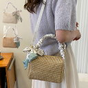 【取り寄せ対応】ストローバッグ かごバッグ ハンドバッグ ショルダーバッグ リボン スカーフ 2WAY 小さい 斜めがけ バッグ 鞄 レディース ホワイト カーキ