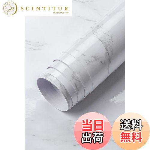 【送料無料】TOTIO 大理石シート 床 リメイクシート 大理石シール カッティングシート 石目調 ホワイト 壁紙シール はがせる おしゃれ 40CMx5M 自粘着 防水 防カビ 耐熱 厚手 戸棚壁紙 防油 防汚 ビニール壁紙 キッチン 浴室 DIY装飾シート テーブル 家具補修シール シート