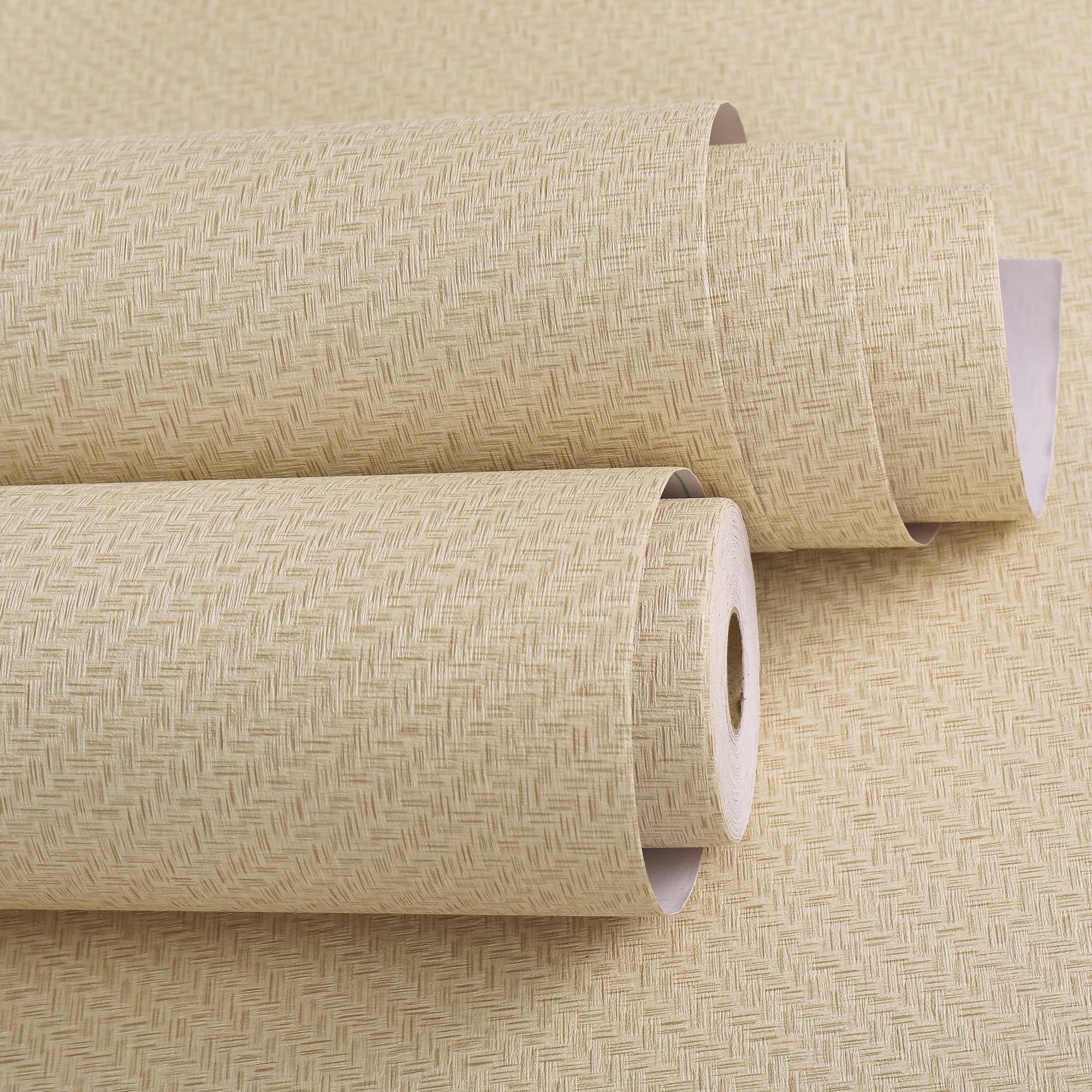 Haimin 壁紙シールはがせる60cm×10m無地 織物調 壁紙シール 麦わら織りの質感 リネン壁紙 リメイクシート 3D 厚手 自己粘着 模様替え 補修 多用途 ふすま紙 (薄黄色 -5)…