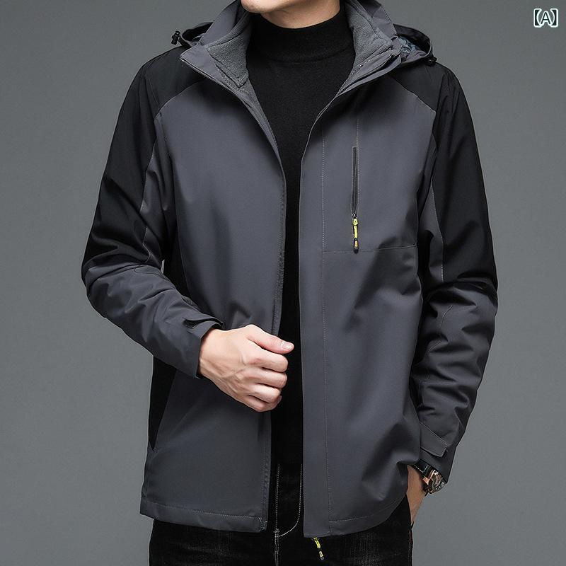 ジャケット メンズ 秋冬 定番 アウトドア 登山 キャンプ 旅行 フード付き スタンドカラー 3in1 シェルジャケット ウインドブレーカー 耐摩耗性 ポリエステル 配色切り替え カジュアル アウター
