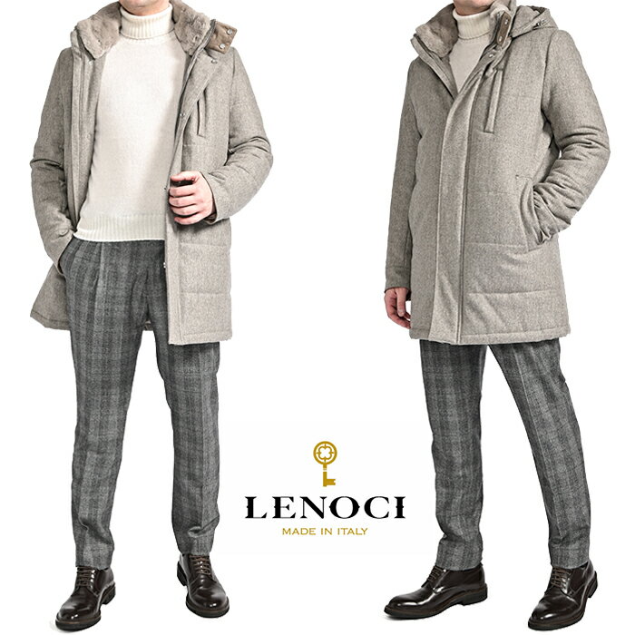 【P20倍】 レノーチ LENOCI 【2025-26年 秋冬新作】 立ち襟ファー フード付き 中綿入りスタンドカラーコート 秋冬 メンズ アウター CANONICO カノニコ 高機能ヴァージンウール 100% グレー イタリア ブランド MADE IN ITALY