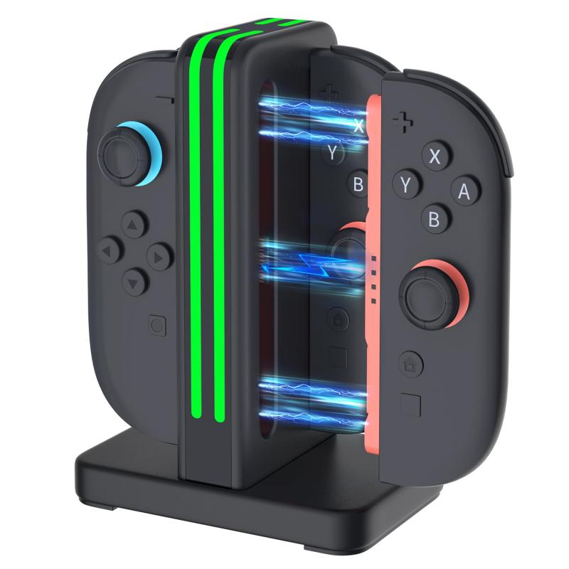〜title〜 Switch Joy-Con用 クリスタル 充電器 【B】 急速充電 スイッチ ジョイコン プロコン 充電スタンド 4台同時に充電可能 ライトアップ商品詳細 【1 製品紹介】スイッチスモールハンドル充電スタンドは、スイッチハンドルの充電要件に合わせて設計された充電製品です。この製品は、4つの小さなハンドルを同時に充電できます(つまり、2セットのスイッチハンドルを同時に充電できます)。またはPROハンドルを充電します。充電が必要な場合は、対応する小さなスイッチハンドルのみをこの製品の充電ベースに挿入します。この充電スタンドは、標準のUSB_5V電源を採用しているため、スイッチホストのUSBインターフェイス、コンピューターのUSBインターフェイス、または他の5V携帯電話の電源アダプターのUSBインターフェイスから簡単に電力を得ることができます。【2 製品の特徴】●本製品はピアノブラックの表面処理を採用しており、4本の色が変わるクリスタルライトを充電方法として使用し、チャージ状況を色でお知らせします。・プラグアンドチャージ、ユニバーサルUSB_5V電源、より優れたユーザーエクスペリエンス。・クリスタルライトは充電すると赤になり、充電が完了すると緑に変わります。これは快適でわかりやすいです。; 【3 使用説明書】・この充電ベースを使用して、スイッチハンドルを充電します。・USBケーブルを標準のUSB_5V出力またはFireBullインターフェースを備えたデバイスに接続します。・次に、USB充電ケーブルのMICROプラグを充電ベースのMICROソケットに接続します。・この時点で、4つのクリスタルがグリーンに光り、充電ベースの電源が正常にオンになっていることがわかります。・スイッチハンドルを充電スタンドの左側と右側に挿入します。このとき、クリスタルのグリーン光がレッドに変わった場合は、このポートに取り付けられているスイッチハンドルが充電中であることを意味します。・スイッチハンドルの内蔵バッテリーが完全に充電されると、充電スタンドの透明な四角い柱が赤色の光源を示し、エメラルドグリーンのライトに変わります。・充電が完了したら、スイッチハンドルを充電ベースから取り外します。・この充電ベースで、4個のジョイコンを同時に充電することもできます。【4 製品の仕様と特性】1.適用範囲:小さなハンドルの充電スタンドを切り替えます2.入力電圧:タイプ-c_5V / 1A3.充電電流:200mA * 4※本商品は任天堂純正品ではございません、並行輸入互換品となります為メーカー保証などはございません。※本商品は充電器の販売となります。switch本体やジョイコンは付属しません。注意事項〜お届け時期を必ずご確認くださいませ〜●在庫ありの商品→国内倉庫から発送(当日〜翌日の間に発送いたします。)●お取り寄せ→国内在庫がない場合にはお取り寄せとなり、海外自社倉庫からの発送となります。その際、お届けまでに2〜4週間ほどかかりますので余裕をもってご注文下さい。※商品の発送が遅い、着用予定日に間に合わないなどの理由でのキャンセル・返品は受け付けておりませんのでご了承ください。※生産ロッドにより若干の仕様変更があることがございます。※新品ですが海外製品になりますので、輸送中の傷や汚れがある場合も御座います※本商品を使用した際に発生したトラブル、事故につきまして、当社は一切の責任を負いかねます。 ※製造メーカーでは無い為、専門的なご質問にはお答えできません。※取り付け、適合などはこちらで判断出来かねます、必ず商品ページ詳細や画像をご確認の上ご注文ください。お客様の買い間違いによる返品交換は致しかねます。※他店舗との共有在庫の為出品中であっても購入のタイミングによっては在庫切れになる場合が御座います。お急ぎの方は購入前に質問にてお問い合わせ下さい。※ストア情報・商品ページ記載の注意事項に同意頂ける方のみご注文ください。ご注文いただいた時点で 注意事項に同意されたものとさせて頂きます。dco-157-03【1 製品紹介】 スイッチスモールハンドル充電スタンドは、スイッチハンドルの充電要件に合わせて設計された充電製品です。この製品は、4つの小さなハンドルを同時に充電できます(つまり、2セットのスイッチハンドルを同時に充電できます)。またはPROハンドルを充電します。充電が必要な場合は、対応する小さなスイッチハンドルのみをこの製品の充電ベースに挿入します。 この充電スタンドは、標準のUSB_5V電源を採用しているため、スイッチホストのUSBインターフェイス、コンピューターのUSBインターフェイス、または他の5V携帯電話の電源アダプターのUSBインターフェイスから簡単に電力を得ることができます。 【2 製品の特徴】 ●本製品はピアノブラックの表面処理を採用しており、4本の色が変わるクリスタルライトを充電方法として使用し、チャージ状況を色でお知らせします。 ・プラグアンドチャージ、ユニバーサルUSB_5V電源、より優れたユーザ