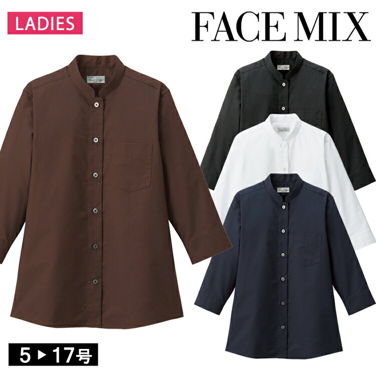 フェイスミックス FACEMIX 無地 定番 レディース レディス スタンドカラー 七分袖 ブラウス 長袖シャツ FB4047L サイズ豊富 制服 ユニフォーム 防汚 防シワ 防シワ 防汚