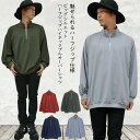 【閉店セール】長袖 メンズ プルオーバーシャツ ハーフジップ ハイネック スタンドカラー アノラック オーバーサイズ ビッグシルエット 無地 リングジップ 無地 テラコッタ カーキ ネイビー グレー Mサイズのみ カットソー メール便選べば送料300円 大人系