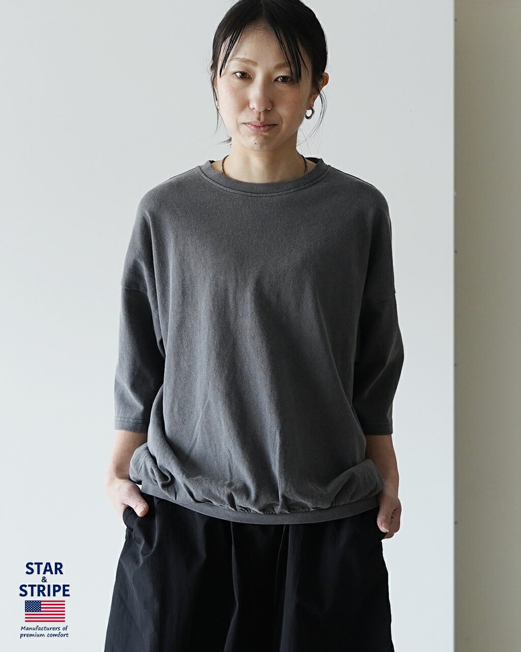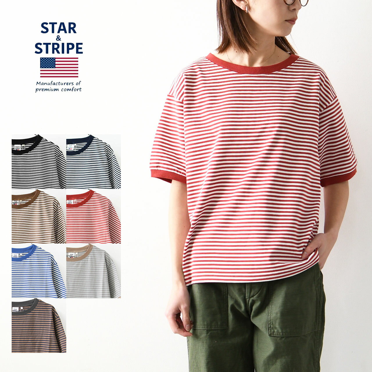 STAR & STRIPE RIB COTTON LOOSE T-SHIRT スター アンド ストライプ リブ コットン ルーズ Tシャツ MD-024 SSMD-024 11colors ホワイト グレー レッド グリーン ブラウン ネイビー ブラック ピンクス カーレット サンド ブルー かわいい リラックス 半袖 体型を拾わない