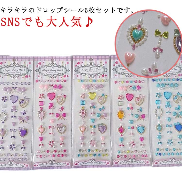 魔法のステッキ デコレーション コラージュ ジュエル 宝石 ストーンシール 5枚セット ドロップシール 立体感 ハート 立体シール デコ キラキラシール ボンボン 手帳シール キラキラ ぷっくり ぷくぷく 5枚セット シール帳 カラフル 派手
